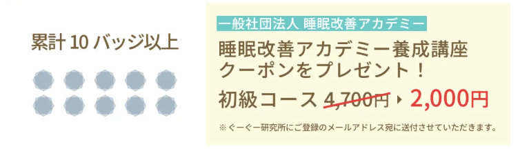 累計バッジ10以上の特典 睡眠改善アカデミー養成講座