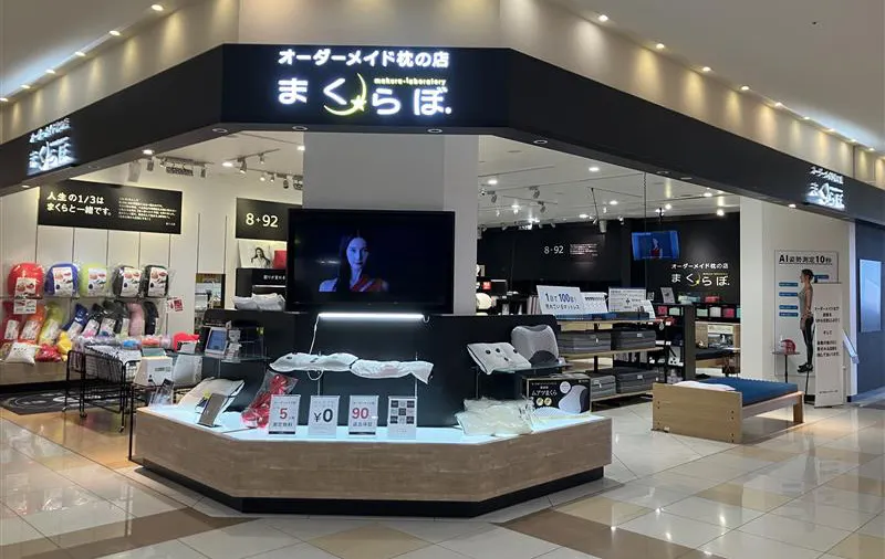まくらぼアリオ倉敷店は、JR倉敷駅から徒歩すぐのアリオ倉敷2階にある、オーダーメイド枕をはじめとする寝具専門店。