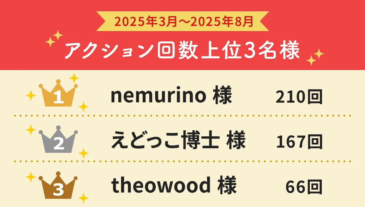 2025年3月〜2025年8月のアクション回数特典の獲得者を発表いたします!